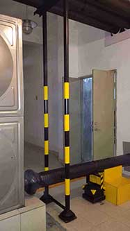 3、在水管與墻體連接部分,掏空墻體,讓管道與墻體分開,不能接觸,并改裝成支撐連接方式,其下根據(jù)振動(dòng)頻率設(shè)計(jì)安裝DSF-2水泵專用隔振器(根據(jù)實(shí)際情況,由于水泵房噪聲相對不嚴(yán)重,影響1-2樓,出于成本控制,選用經(jīng)濟(jì)型)。?